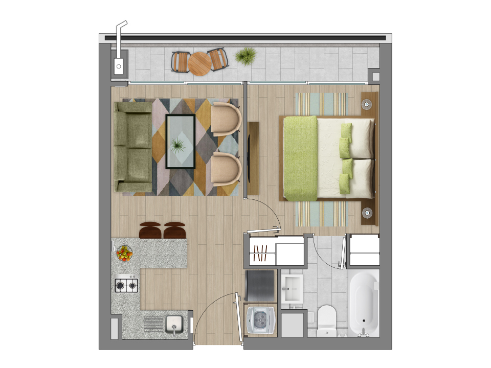 Precio válido para reservas entre el 1 y 30 de noviembre 2025, cuya promesa de compraventa se firme antes del 31 de diciembre 2025, y cuyo contrato de compraventa se firme antes del 31 de diciembre 2025. Precio sujeto a disponibilidad, incluye todos los descuentos. Esta unidad no puede comprarse con estacionamiento ni bodega. No acumulable con otros beneficios y promociones.