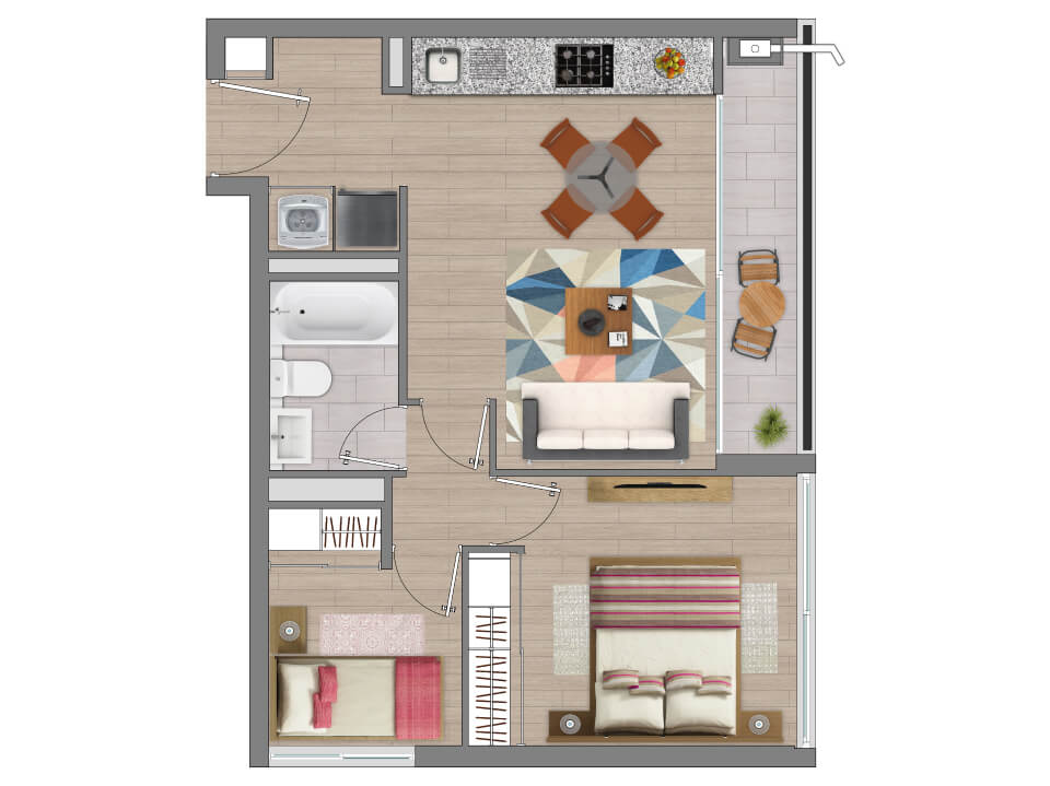 Precio válido para reservas entre el 1 de marzo y 31 de marzo 2026, cuya promesa de compraventa se firme antes del 30 de abril 2026, y cuyo contrato de compraventa se firme antes del 31 de mayo 2026. Precio sujeto a disponibilidad, incluye todos los descuentos. Precio oferta no incluye estacionamiento ni bodega, sujetos a disponibilidad. No acumulable con otros beneficios y promociones.
